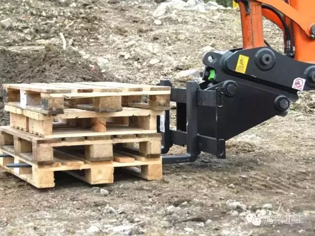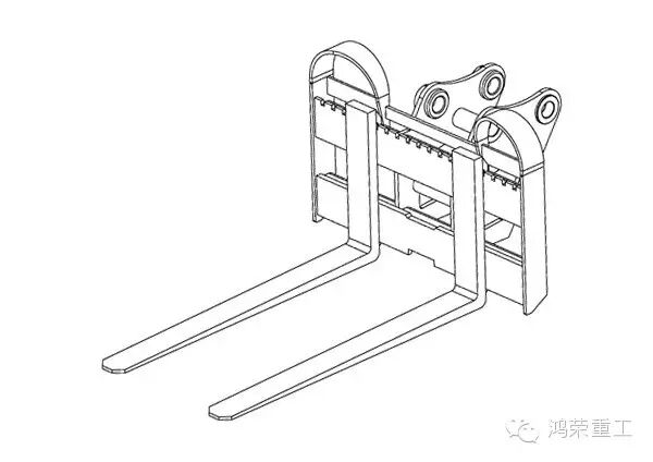 通過(guò)連接架把叉車(chē)臂安裝在挖掘機(jī)小臂上,可正叉和反叉搬運(yùn)貨物,叉臂寬度可調(diào)節(jié),方便快捷。