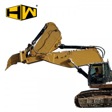 產(chǎn)品特點(diǎn):搭載35噸以上的挖掘機(jī)使用,加大斗桿油缸,臂內(nèi)加鐵砂水泥增加重量