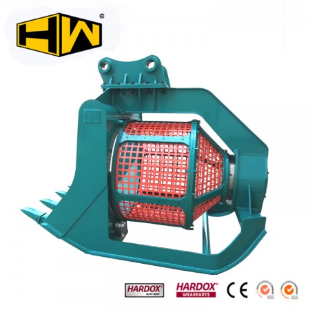 18-25噸級(jí)挖掘機(jī)用旋轉(zhuǎn)篩分網(wǎng)斗,適合篩分顆粒較小物料。篩網(wǎng)孔規(guī)格可根據(jù)物料大小多種選擇(可配20*20-80*80mm),更換方便,大大減少機(jī)器損耗和操作難度。