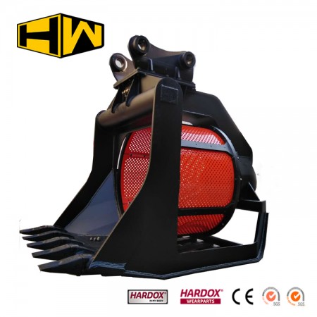 30噸級(jí)挖掘機(jī)用旋轉(zhuǎn)篩分網(wǎng)斗,適合篩分顆粒較小物料。篩網(wǎng)孔規(guī)格可根據(jù)物料大小多種選擇(可配20*20-80*80mm),更換方便,大大減少機(jī)器損耗和操作難度。